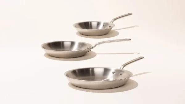 Get the professional performance of Stainless Clad in every size. Our Stainless Clad Frying Pan put us on the map and with this bundle, you get all three of our Award-Winning Frying Pans. Each Frying Pan is crafted from five layers of premium metals for optimized heat distribution and conduction. The long, Stay Cool Handle and relative light weight lets you move the pan around with ease.
